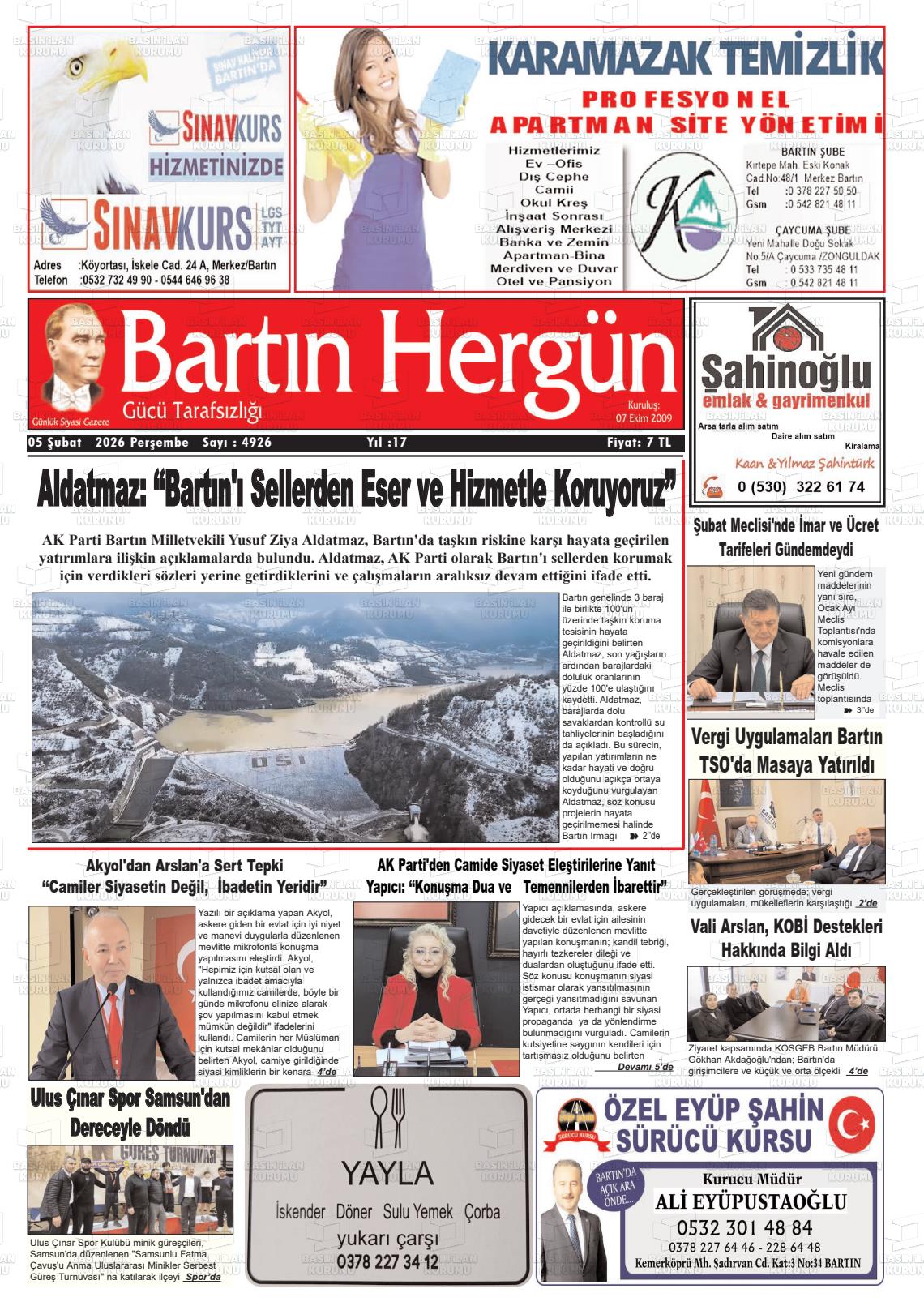 Bartın Yerel Gazeteleri 30 Ocak 2026, Cuma Günü Manşeti