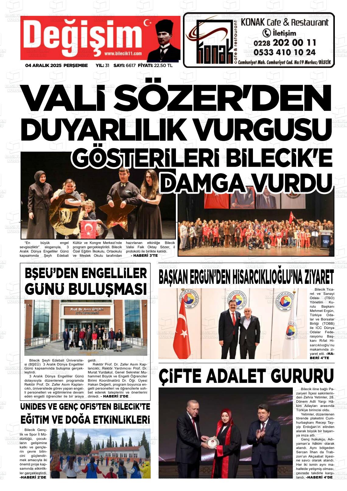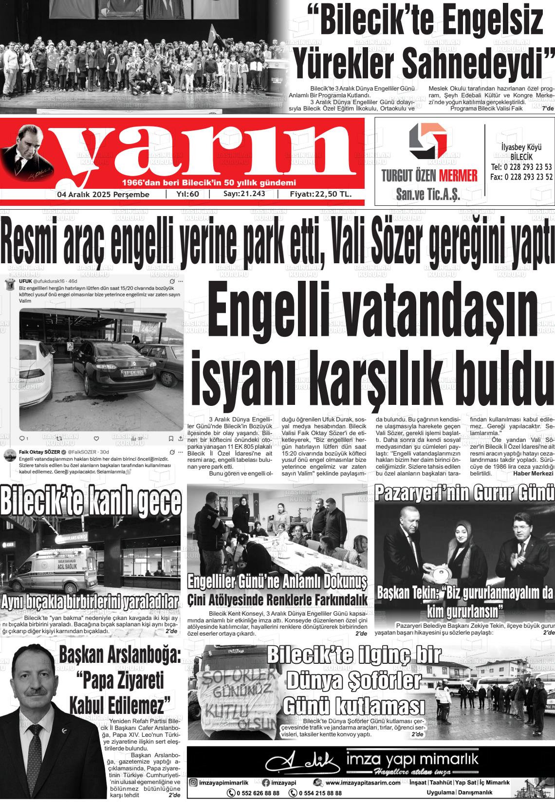 Bİlecİk Yerel Gazeteleri 04 Aralık 2025, Perşembe Günü Manşeti