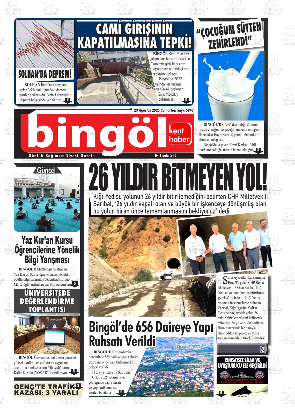 Bİngöl Yerel Gazeteleri 31 Ocak 2026, Cumartesi Günü Manşeti