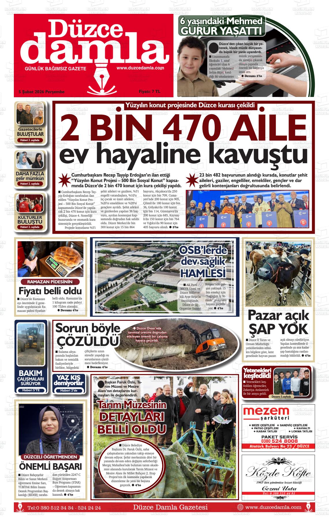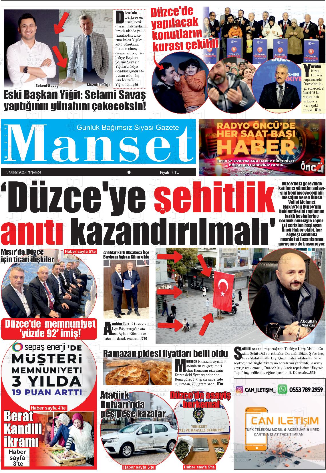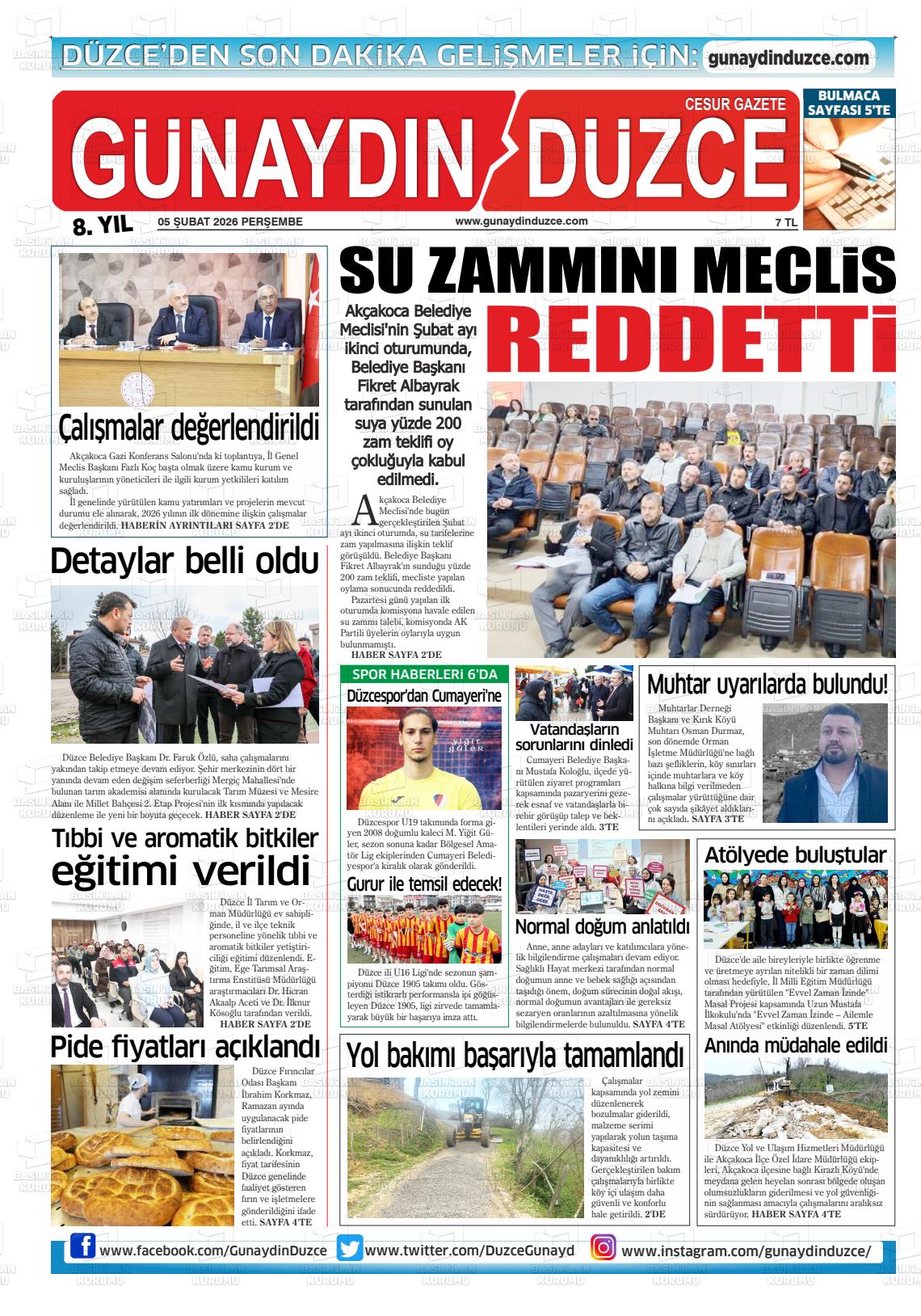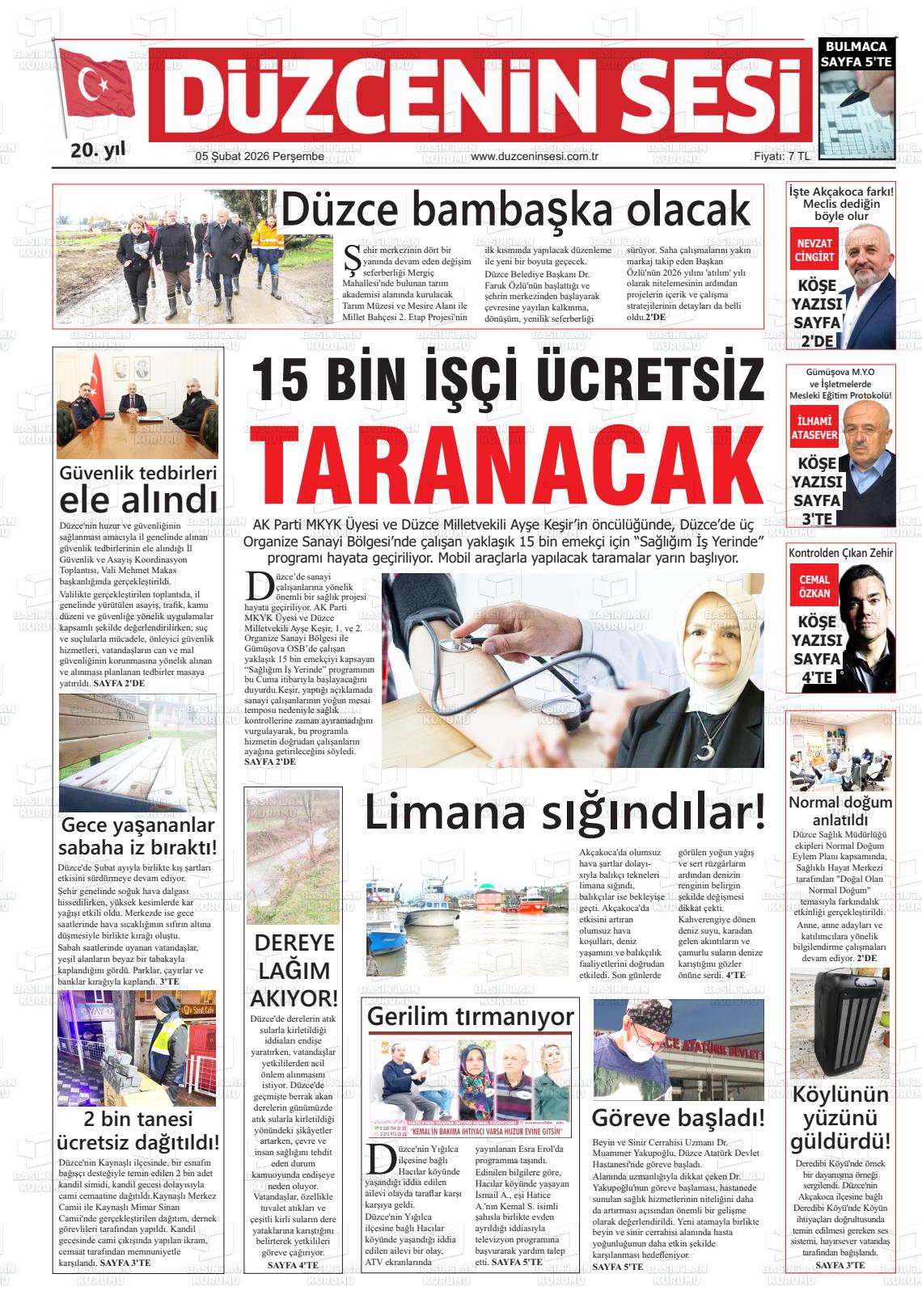 Düzce Yerel Gazeteleri 05 Şubat 2026, Perşembe Günü Manşeti