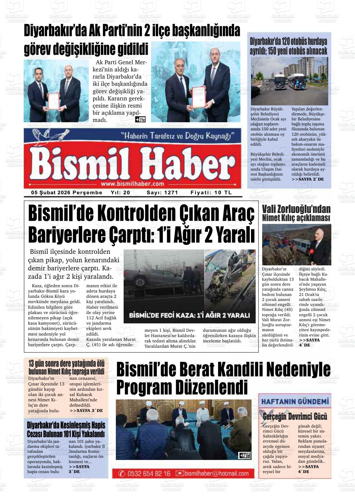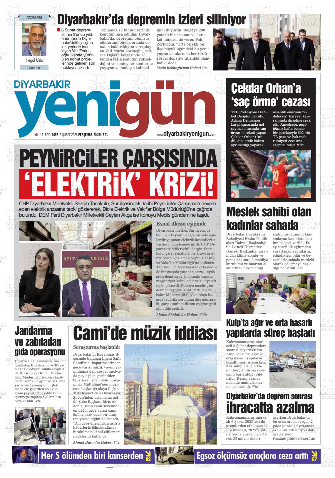Dİyarbakır Yerel Gazeteleri 04 Şubat 2026, Çarşamba Günü Manşeti
