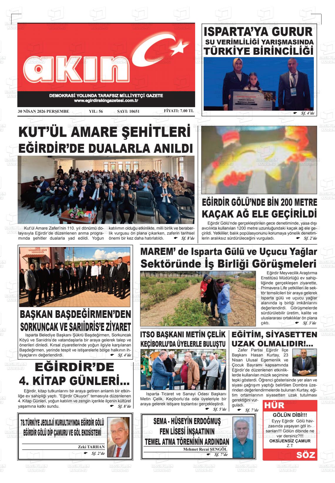 Isparta Yerel Gazeteleri 21 Nisan 2026, Salı Günü Manşeti