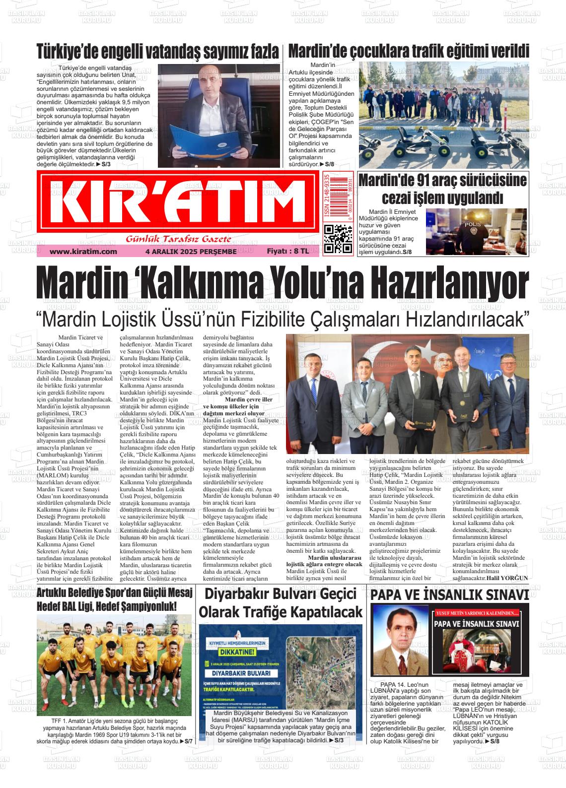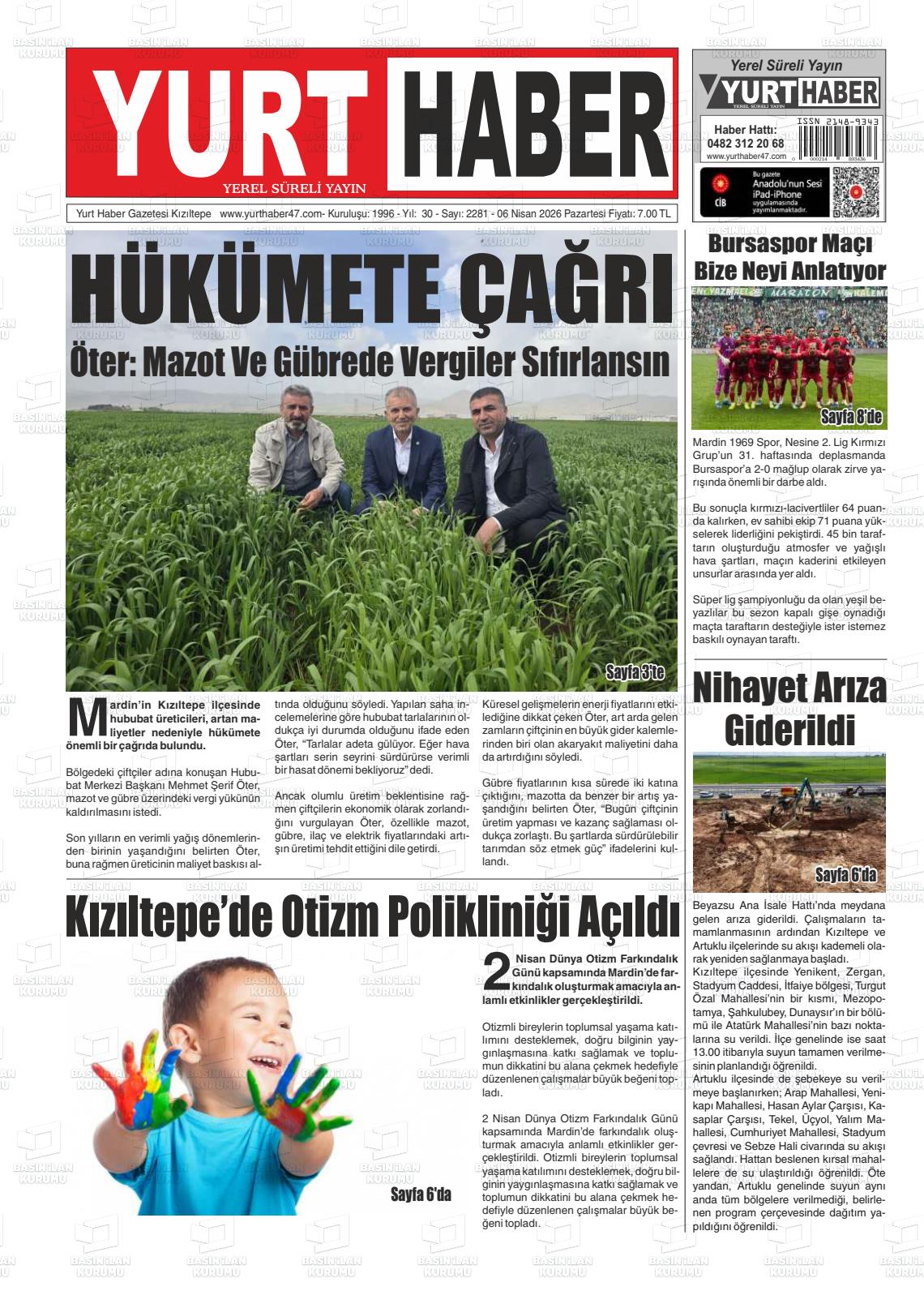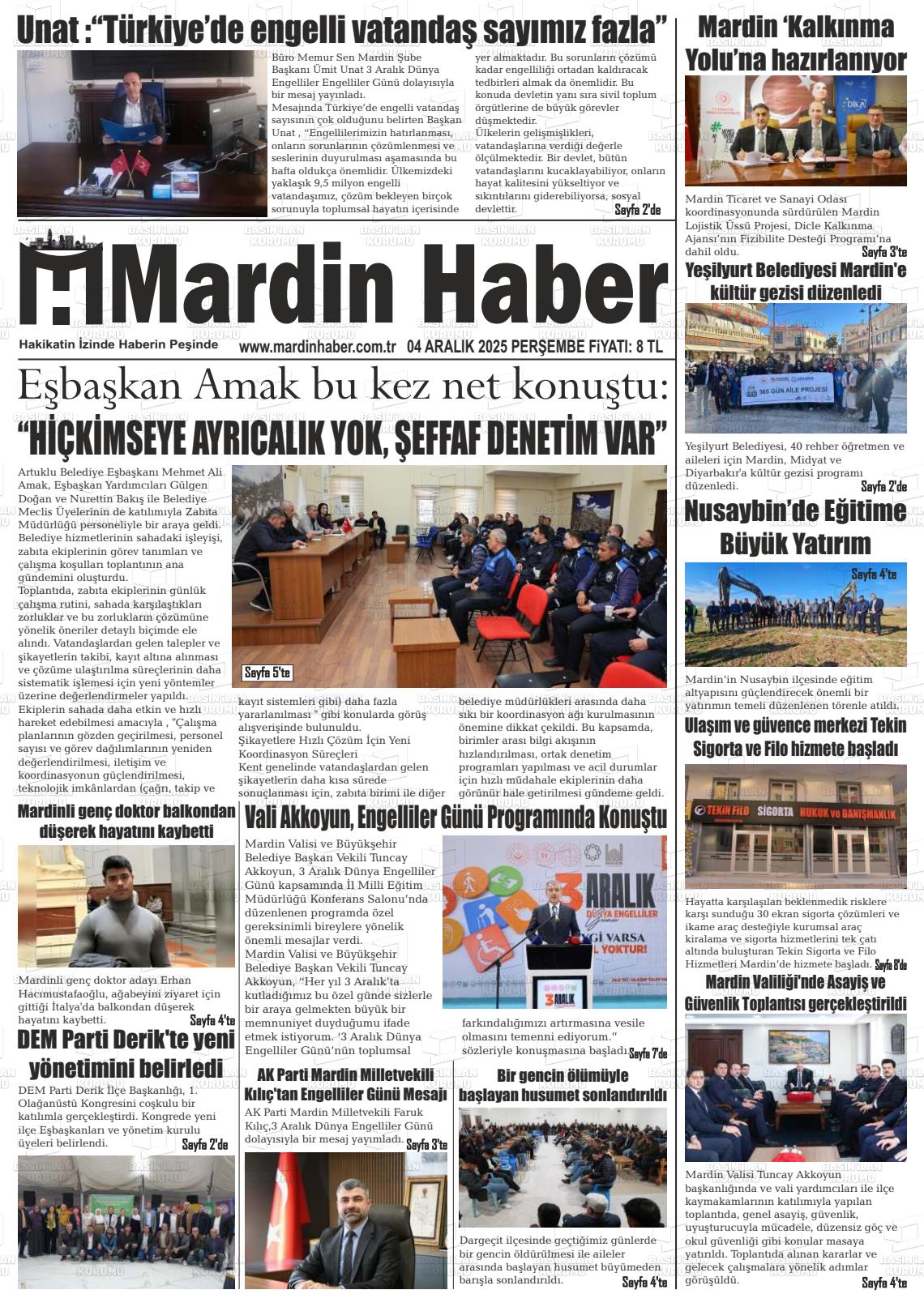 Mardİn Yerel Gazeteleri 06 Nisan 2026, Pazartesi Günü Manşeti