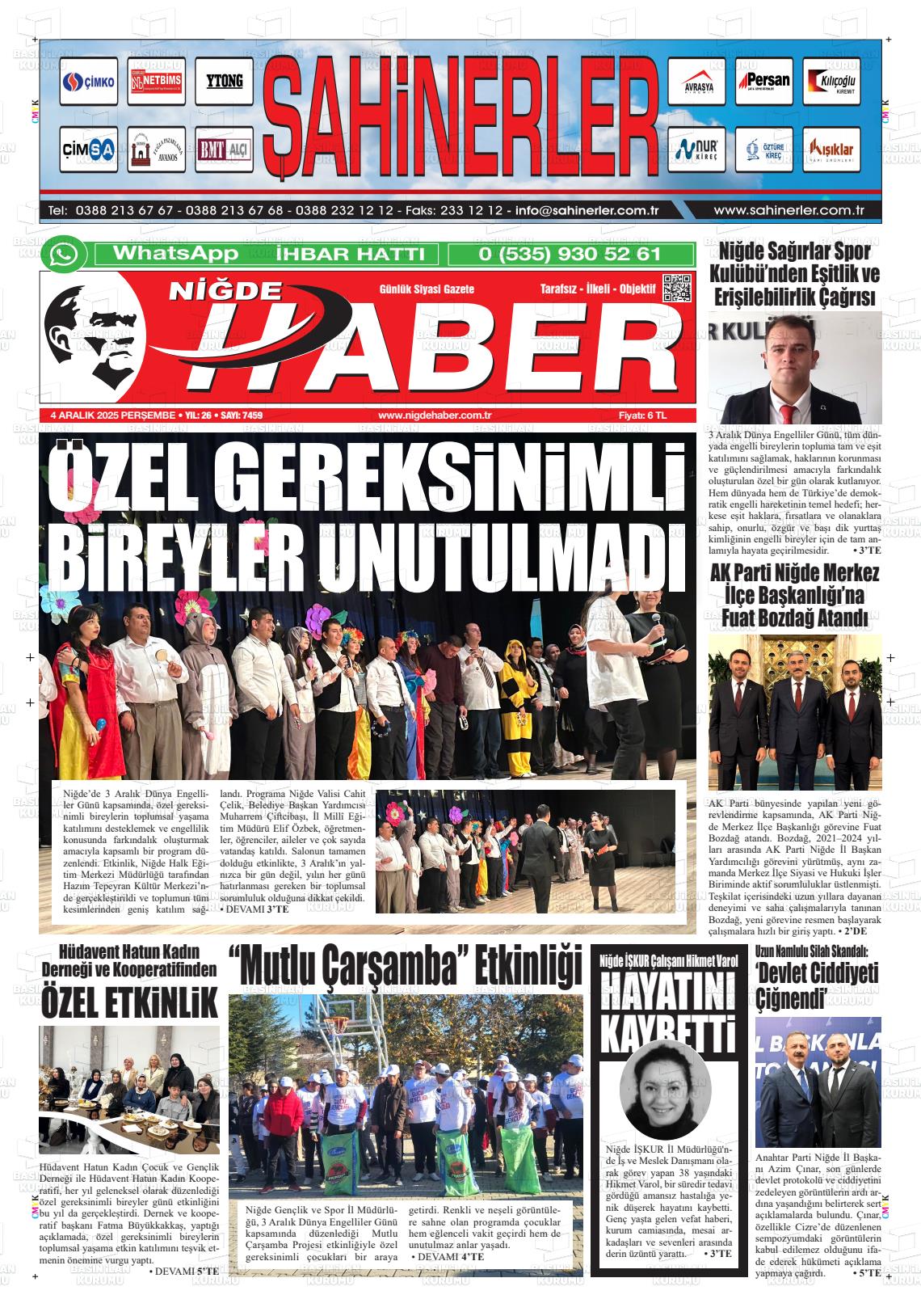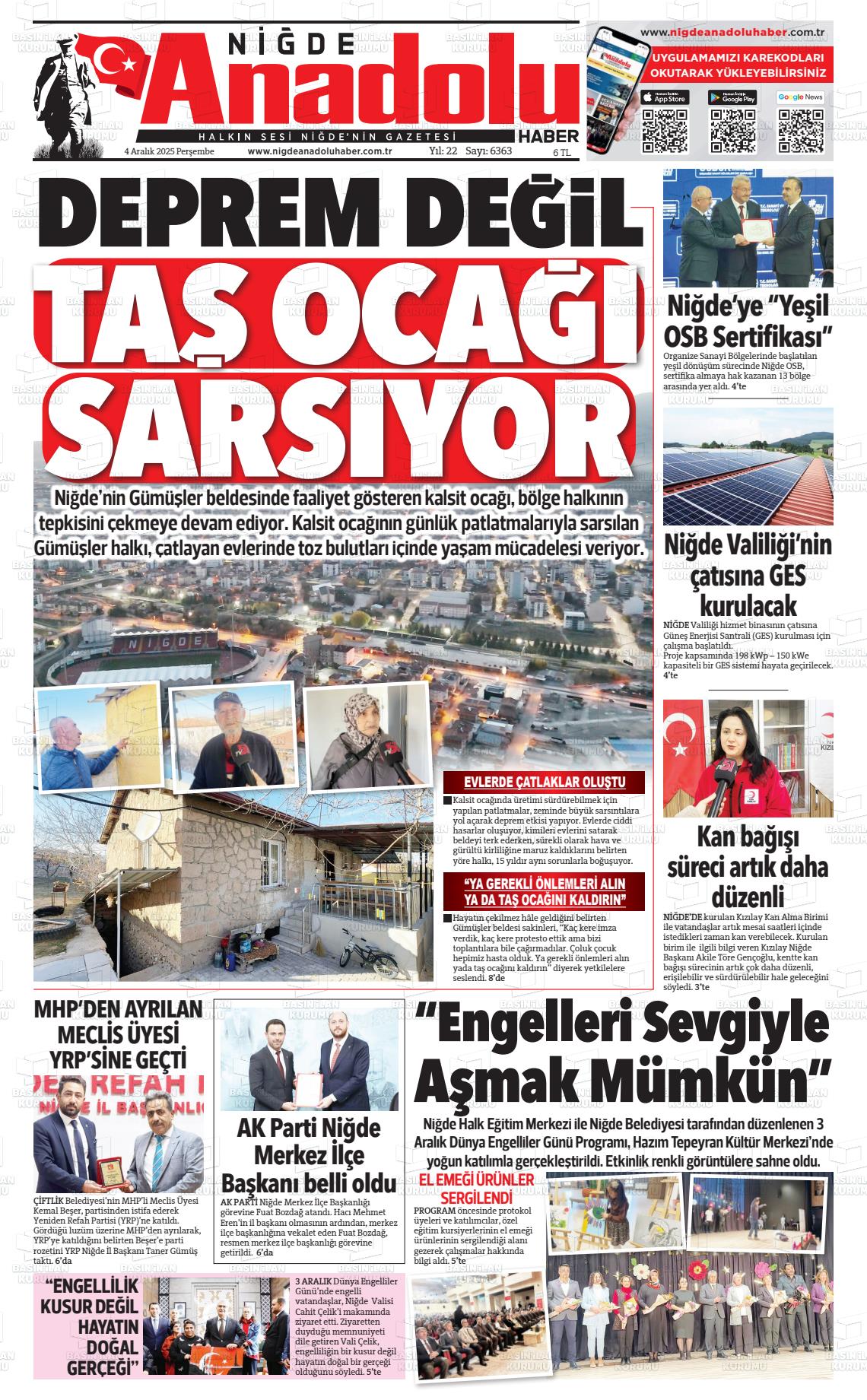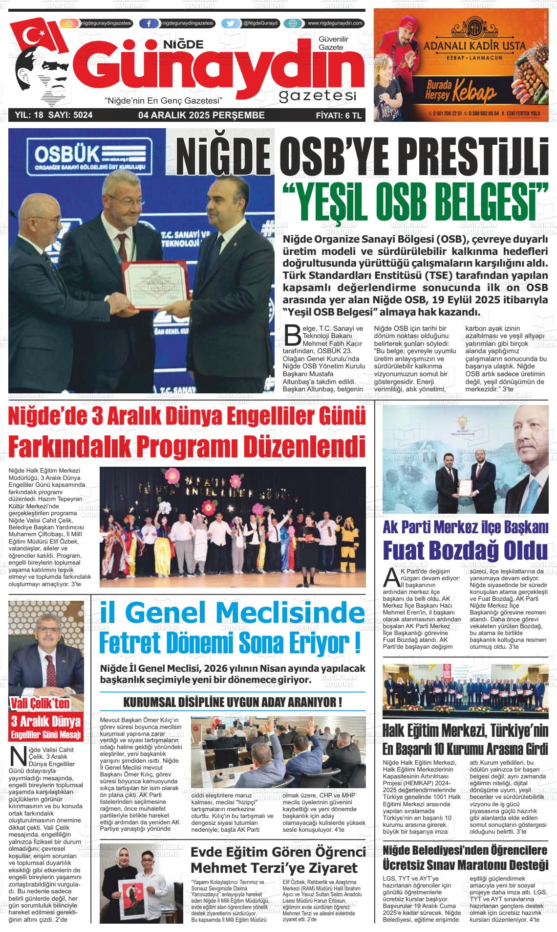Nİğde Yerel Gazeteleri 06 Nisan 2026, Pazartesi Günü Manşeti