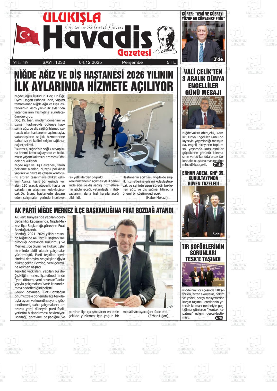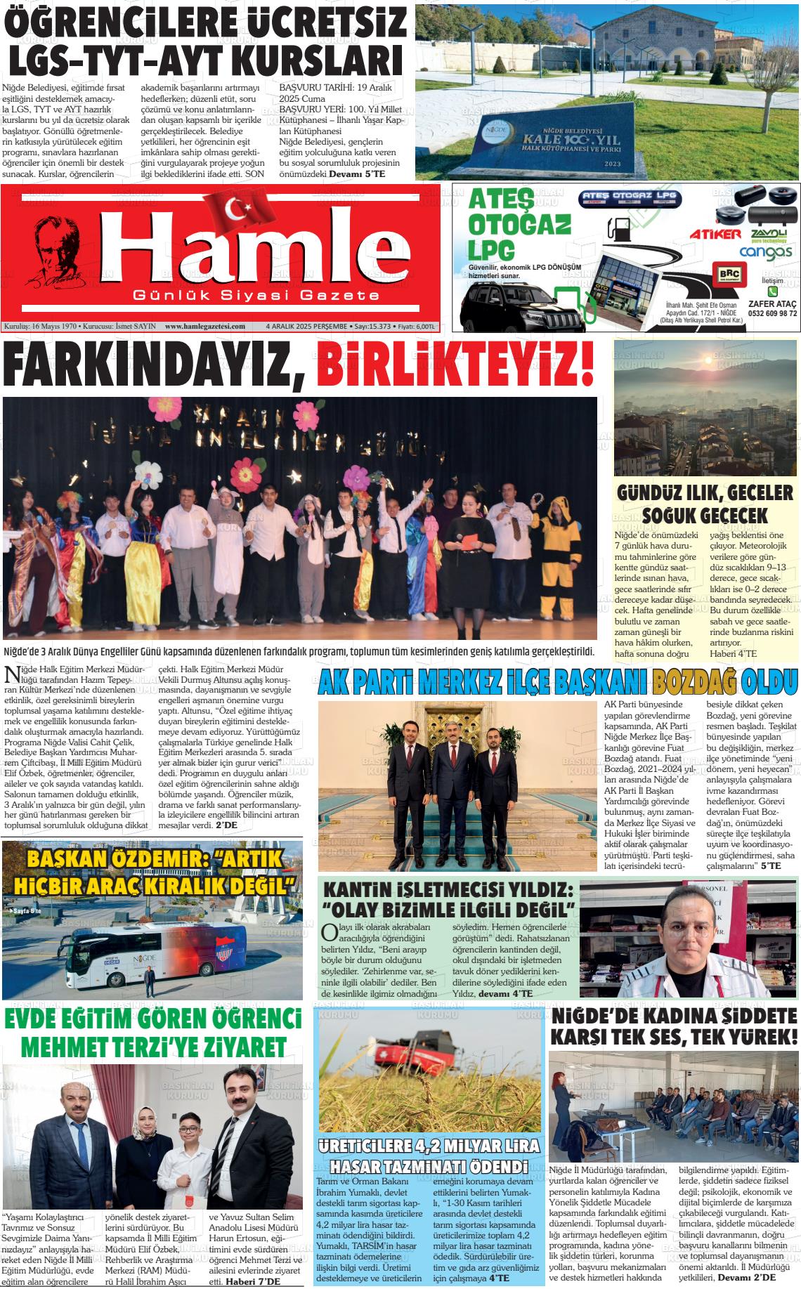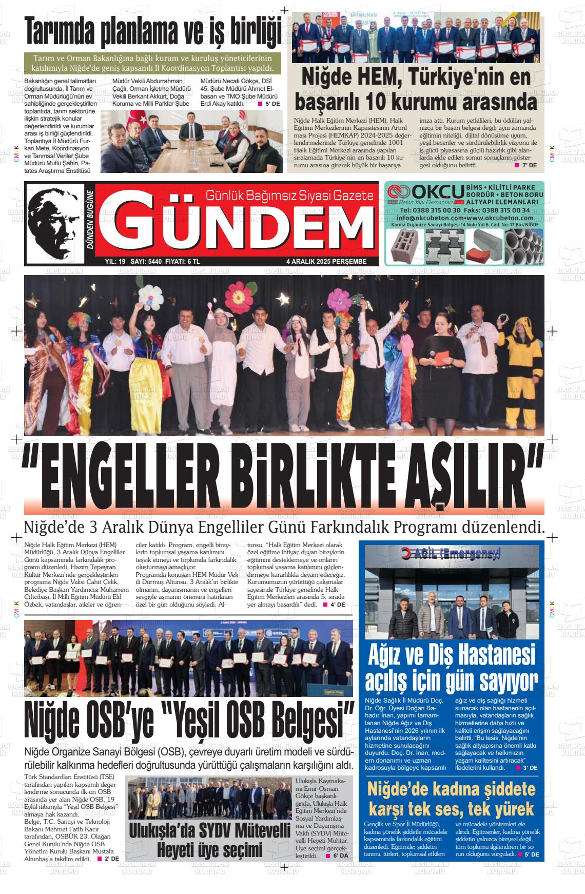 Nİğde Yerel Gazeteleri 06 Nisan 2026, Pazartesi Günü Manşeti