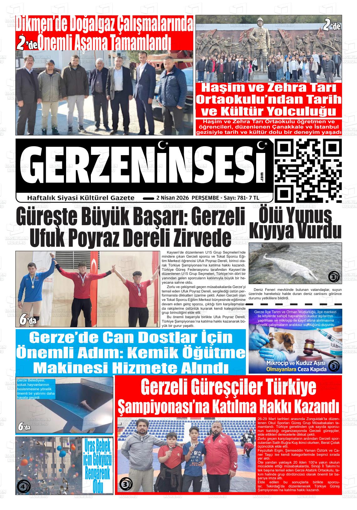 Sİnop Yerel Gazeteleri 02 Nisan 2026, Perşembe Günü Manşeti