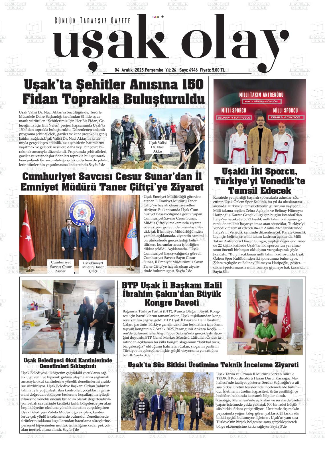 Uşak Yerel Gazeteleri 14 Nisan 2026, Salı Günü Manşeti