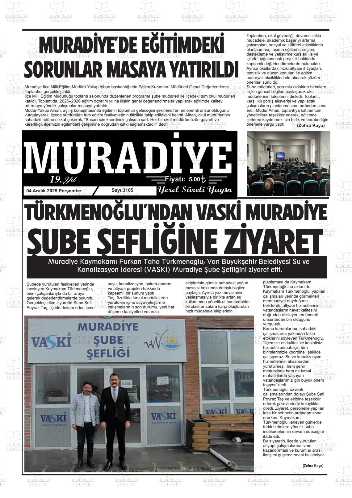 Van Yerel Gazeteleri 04 Aralık 2025, Perşembe Günü Manşeti